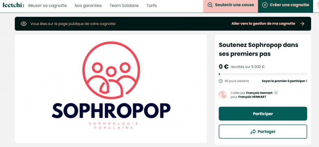 La 1ère cagnotte sophropop est lancée. Soutenez le projet et permettez la mise en place d’ateliers sophro gratuits pour des populations en difficulté